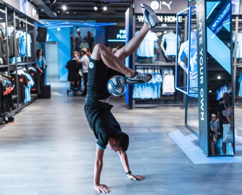 Our performers can wear branded clothing, football kits or campaign apparel, ensuring the brand is clearly represented throughout the performance. Freestyle routines can also incorporate branded footballs, product placement or sponsor messaging, making them a strong fit for product launches, retail promotions, roadshows and fan engagement campaigns.