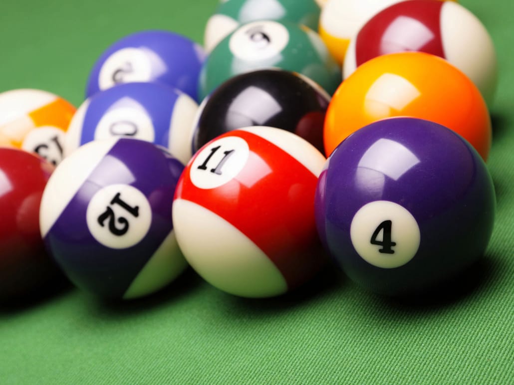 • 2 x Cues, Set of Pool Balls, Triangle & Chalk