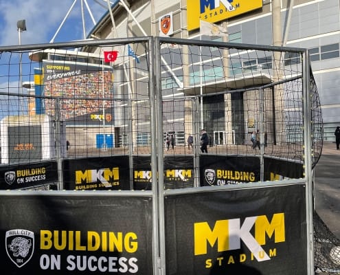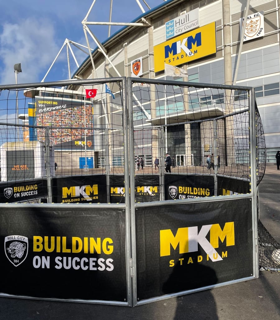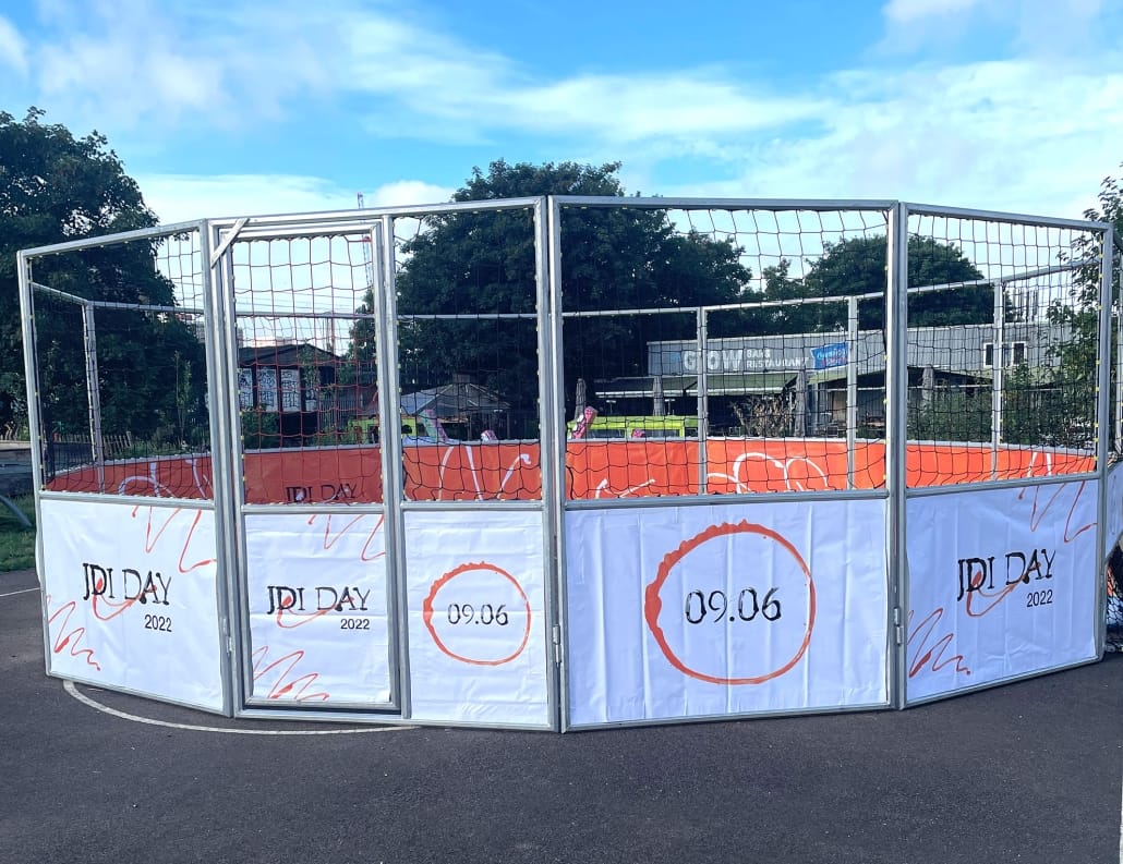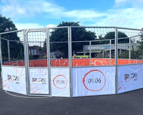 The circular cage design keeps the ball in play and the action tight, ensuring constant movement and continuous entertainment for fans gathered around the perimeter. Built from 10 interlocking panels as standard, the arena can also be expanded to 12 or 14 panels for a larger playing area when required. Each panel offers excellent branding space, allowing sponsors, clubs or campaign artwork to remain highly visible throughout every match.