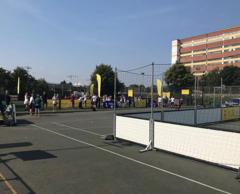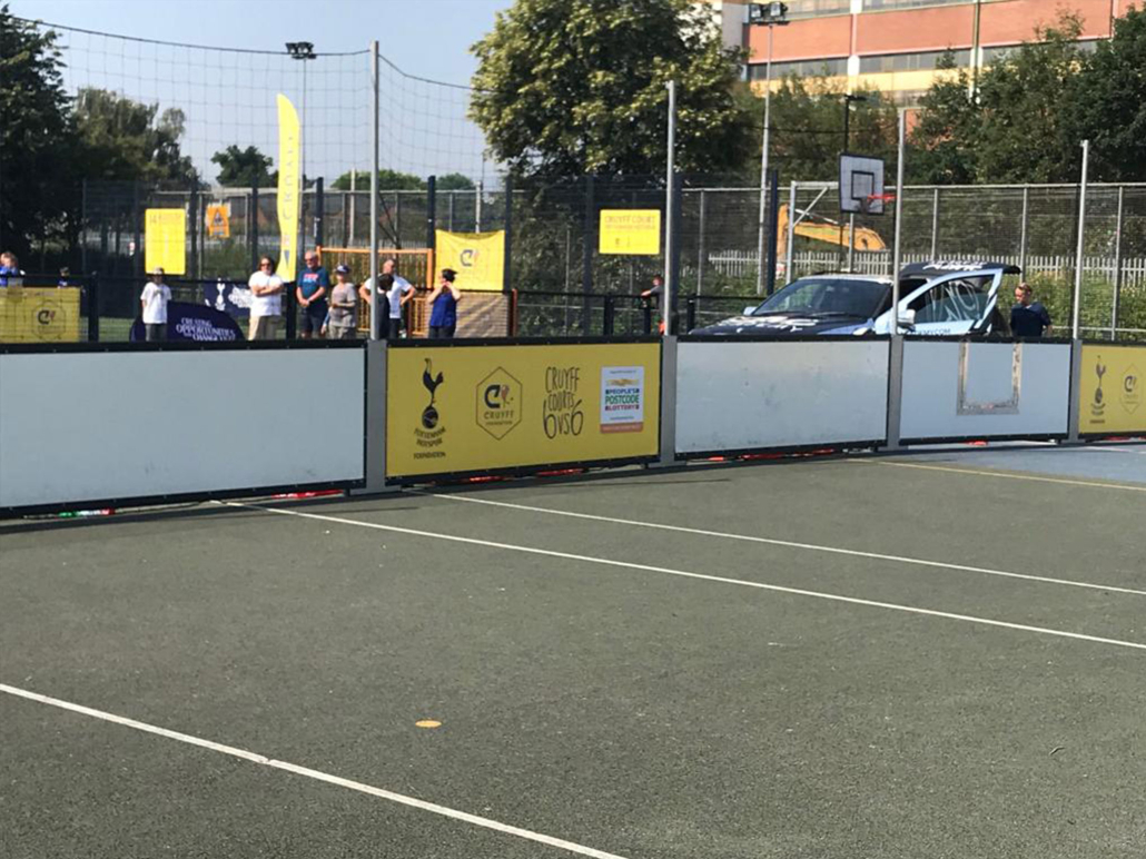 It works particularly well for World Cup fan parks, club matchday fan zones, sponsor activations and corporate football tournaments, where organisers want an activity that draws crowds and encourages participation throughout the day. With integrated goals, optional Astro Tile flooring and fully brandable pitch surrounds, the court becomes both an activity space and a visual centrepiece for the event.