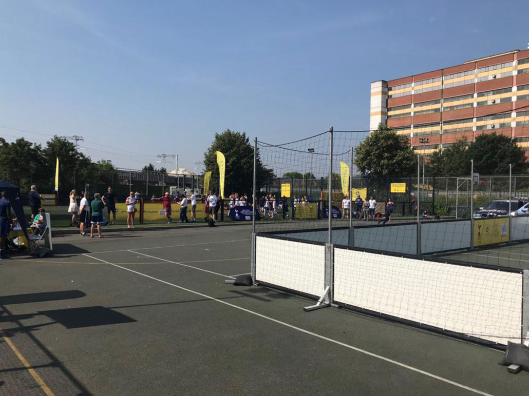 Players typically compete in 3v3, 4v4 or 5v5 matches, with quick rotations allowing large numbers of guests to participate throughout the day. The structure also works well for organised competitions, brand challenges or informal fan participation sessions.